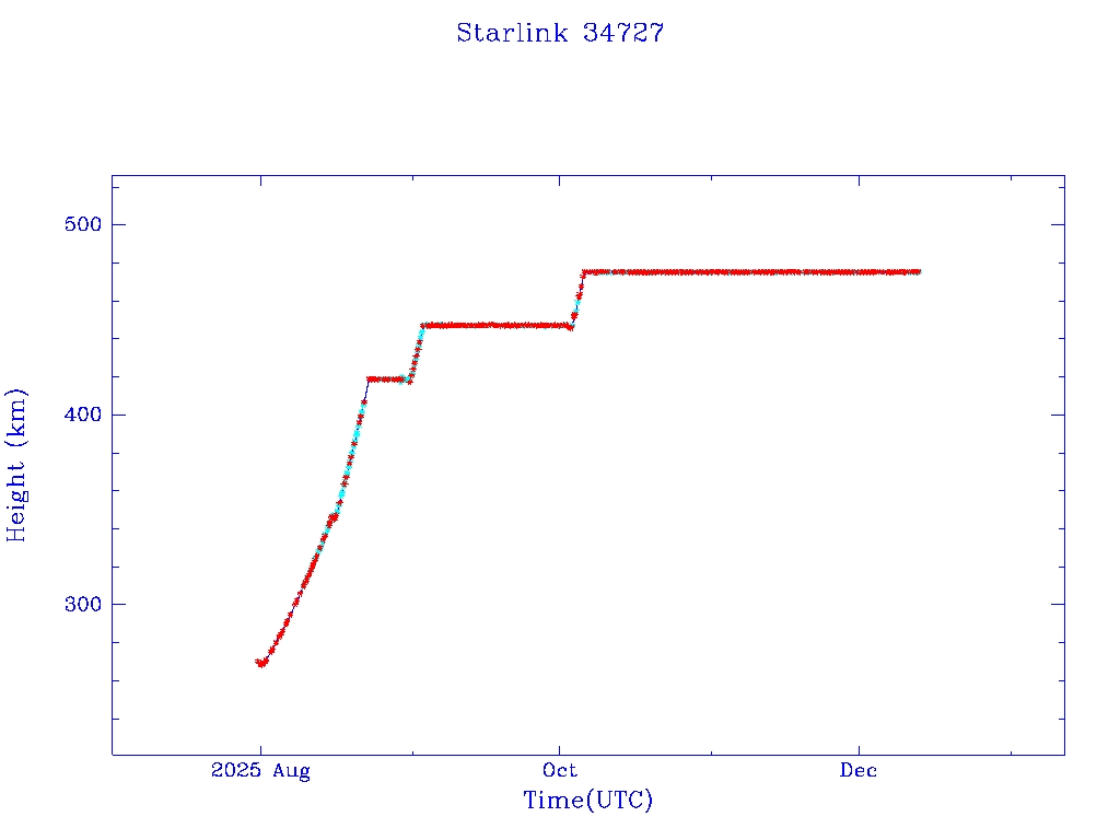 | Starlink 34727 | S65025 | O | 2025 Jul 30 | * | - |  |  |  |