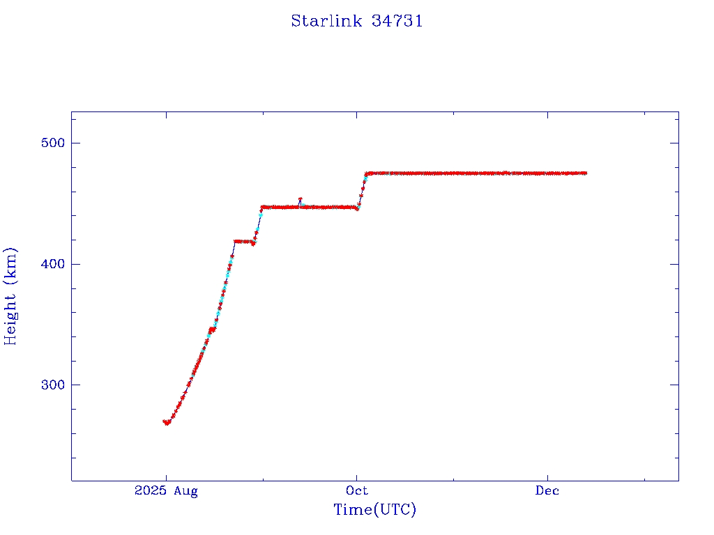 | Starlink 34731 | S65029 | O | 2025 Jul 30 | * | - |  |  |  |