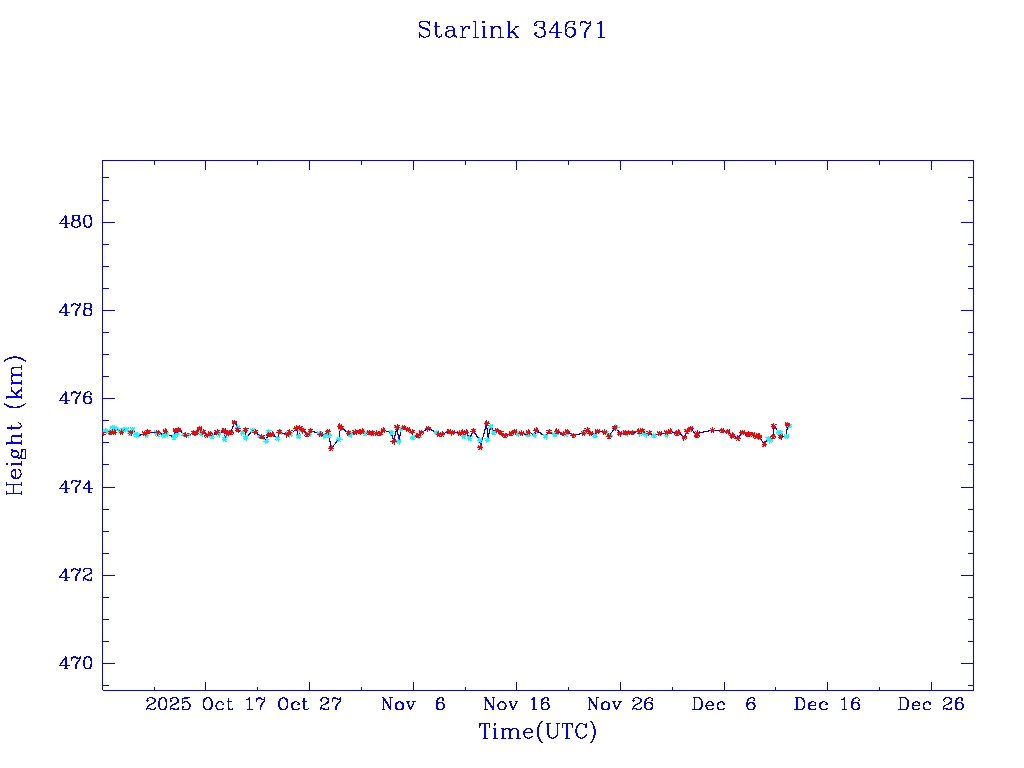 | Starlink 34671 | S65033 | O | 2025 Jul 30 | * | - |  |  |  |