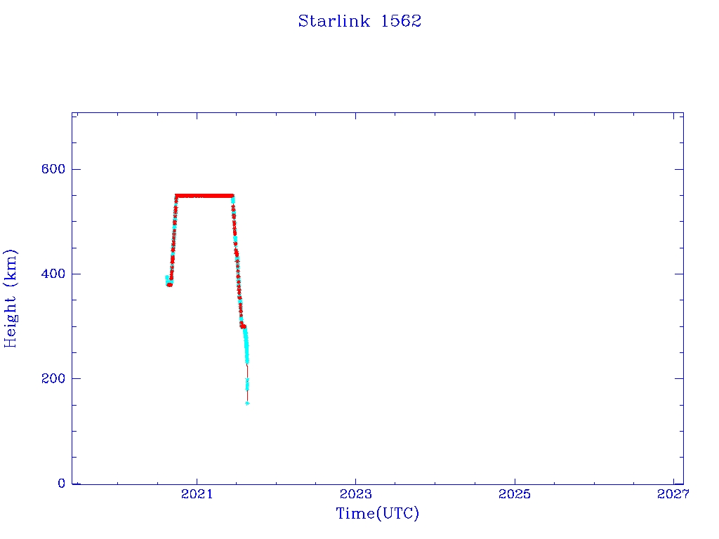 | Starlink 1562 | S46057 | R | 2020 Aug 7 | 2021 Aug 6? | 2021 Aug 18 |  |  |  |