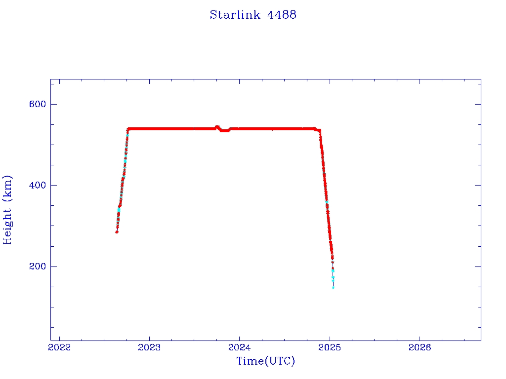 | Starlink 4488 | S53534 | R | 2022 Aug 19 | 2025 Jan 4? | 2025 Jan 13 |  |  |  |